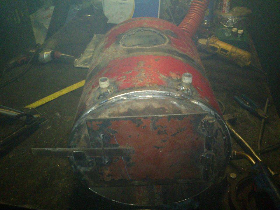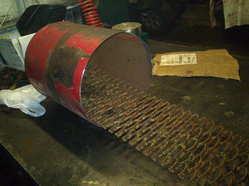 - Срезать верхнюю часть баллона и при необходимости доварить сверху отрезок трубы (чтобы общая высота конструкции достигала 850 мм).