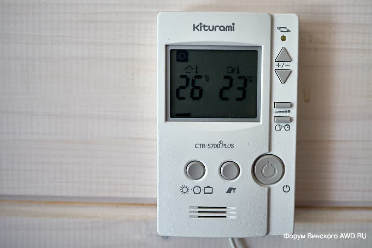 Термостат управления котлом находится в гостиной. Управление простое: есть температура в доме и есть температурный порог ниже которого котел включается. Порог установлен на 23 градуса.