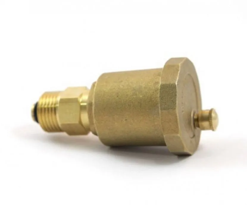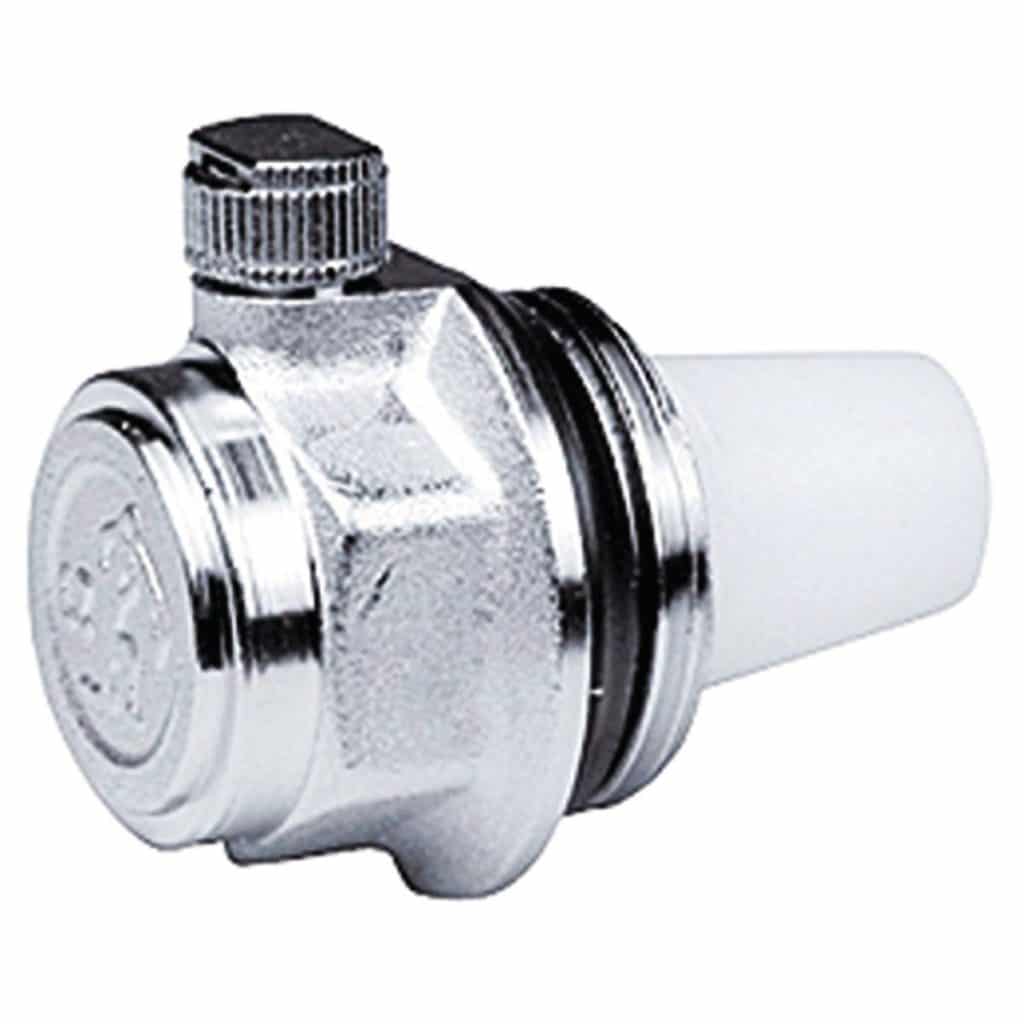 - Автоматический кран. Здесь есть отличия в конструкции и принципе работы от ручного. Автоматический кран Маевского латунный в форме цилиндра, но здесь не предусмотрен игольчатый клапан. Вместо этого используют пластиковый поплавок. Принцип работы здесь заключается в том, что поплавок перемещается при наличии воздуха по системе и открывает или закрывает затворник. Вмешательство людей здесь не требуется.