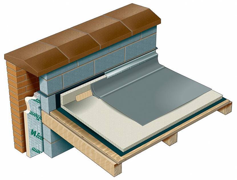 В плоской крыше обе функции объединены в одном «пироге», который имеет следующее расположение слоев: перекрытие, теплоизоляция, кровельное покрытие.