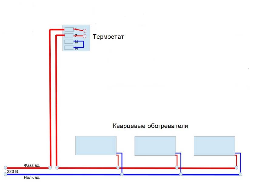 Схема монтажа кварцевых обогревателей