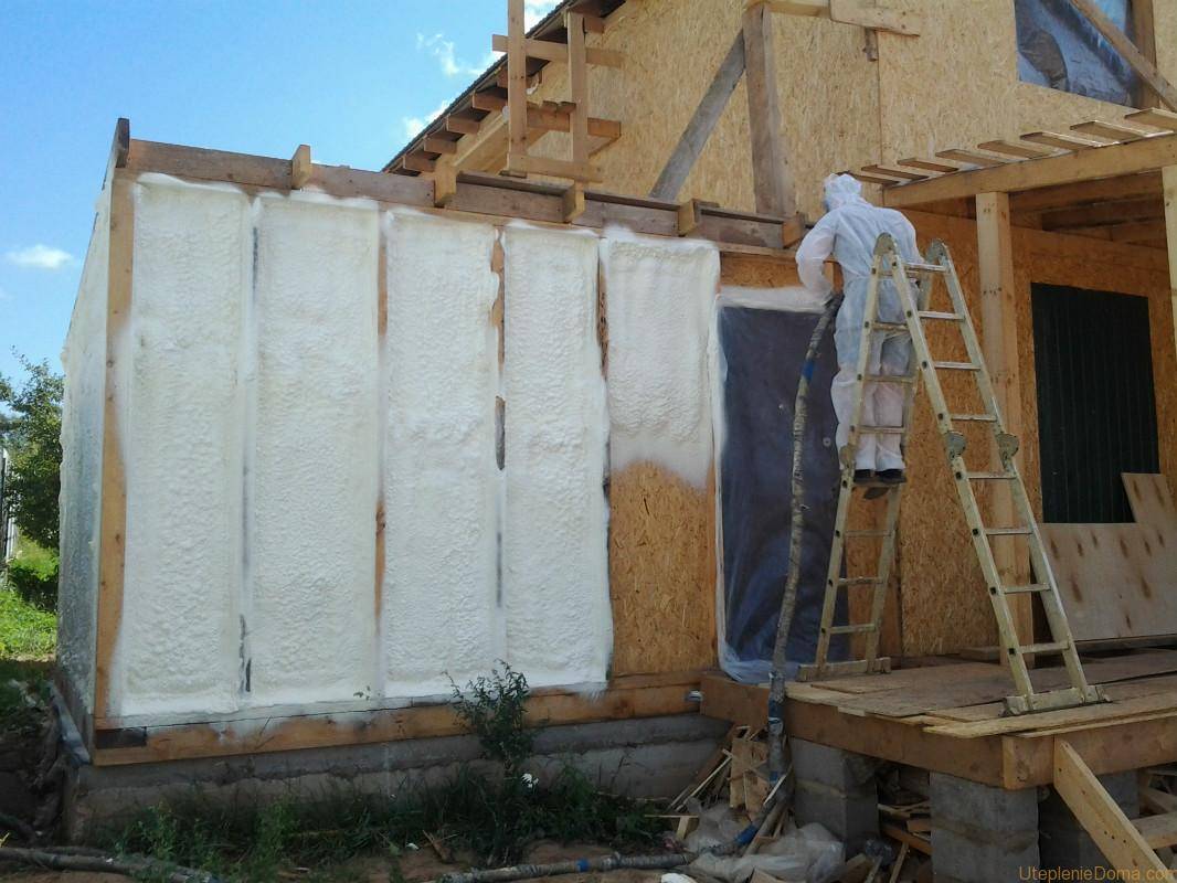 Монтажная пена, не используется, как основной утеплитель из за дороговизны, ей обрабатывают стыки плиточного утеплителя (пенопласта, пенополистерола)