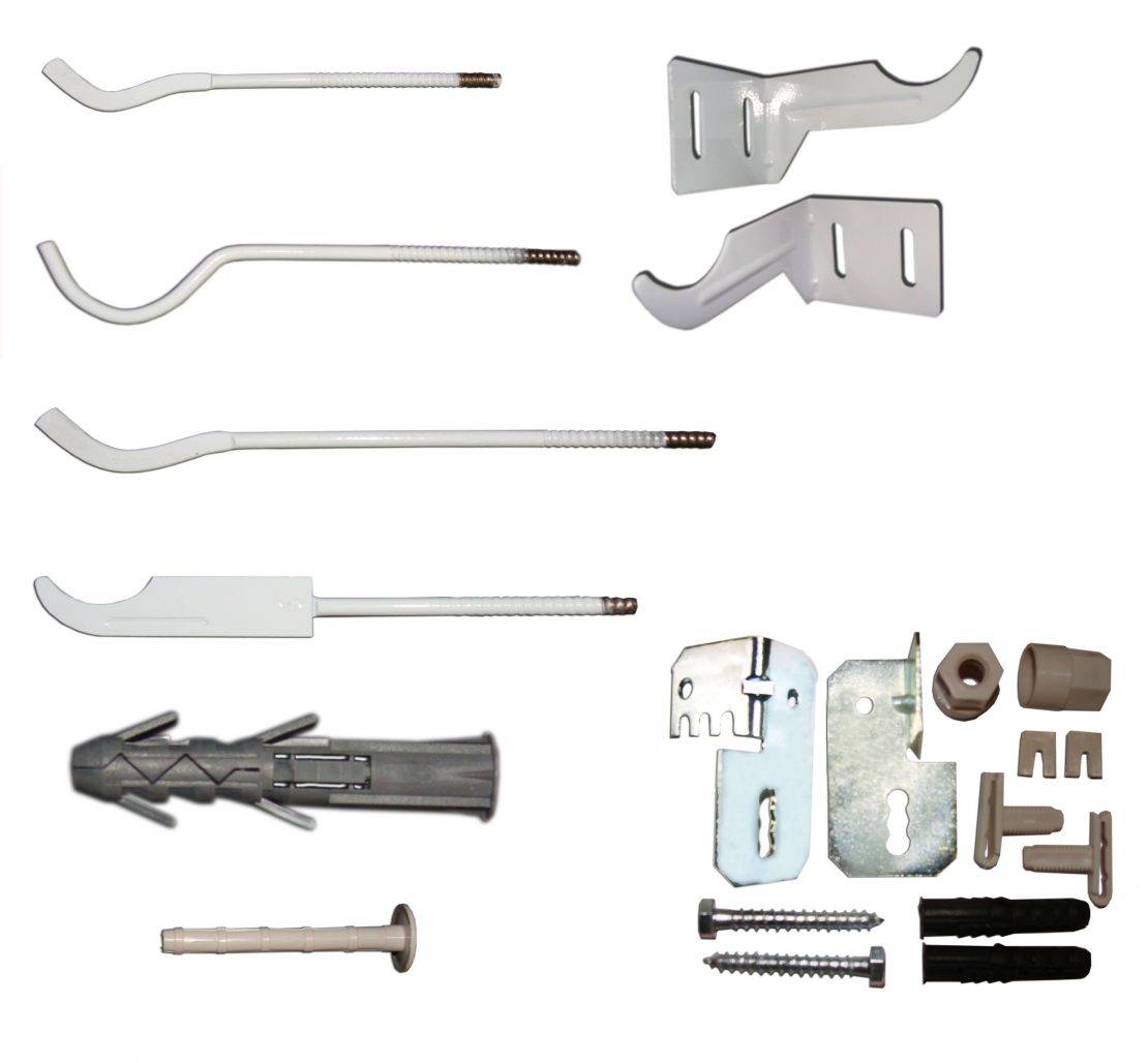 Для установки оборудования пригодятся дополнительные детали. В продаже есть монтажные наборы и комплекты для установки, это разные виды оборудования. В частности, в комплекте есть клапаны, переходники, заглушки, а монтажный набор содержит фиксаторы и другие детали для крепления батареи на стену.