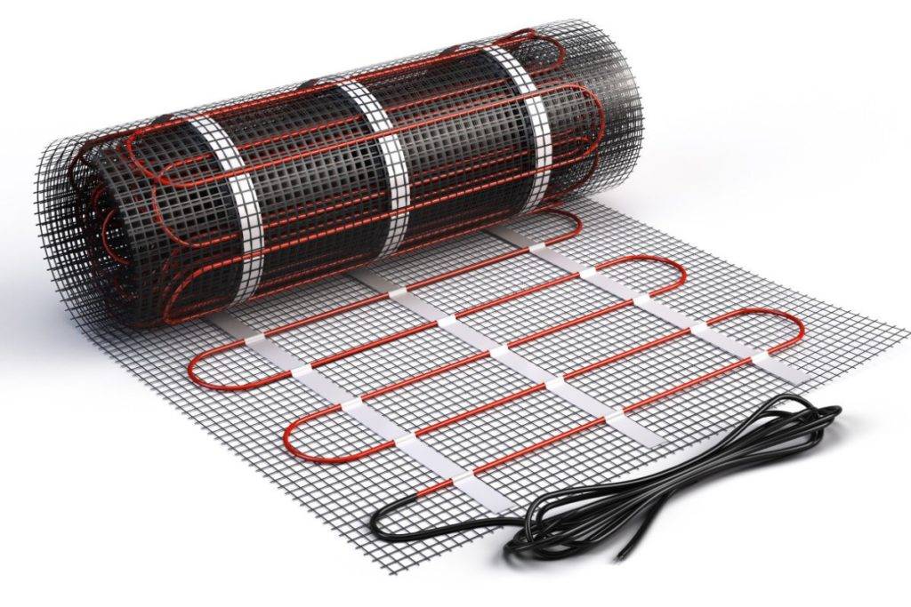 Нагревательный мат — это тот же двужильный кабель, только прикрепленный к пластиковой сетке. В среднем шаг кабеля составляет 9 см. Преимущество нагревательного мата в способе монтажа: достаточно раскатать по полезной площади помещения и залить стяжкой или уложить плитку.