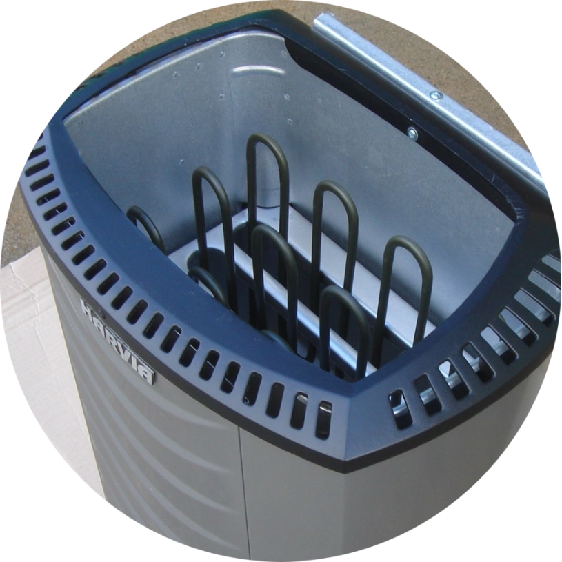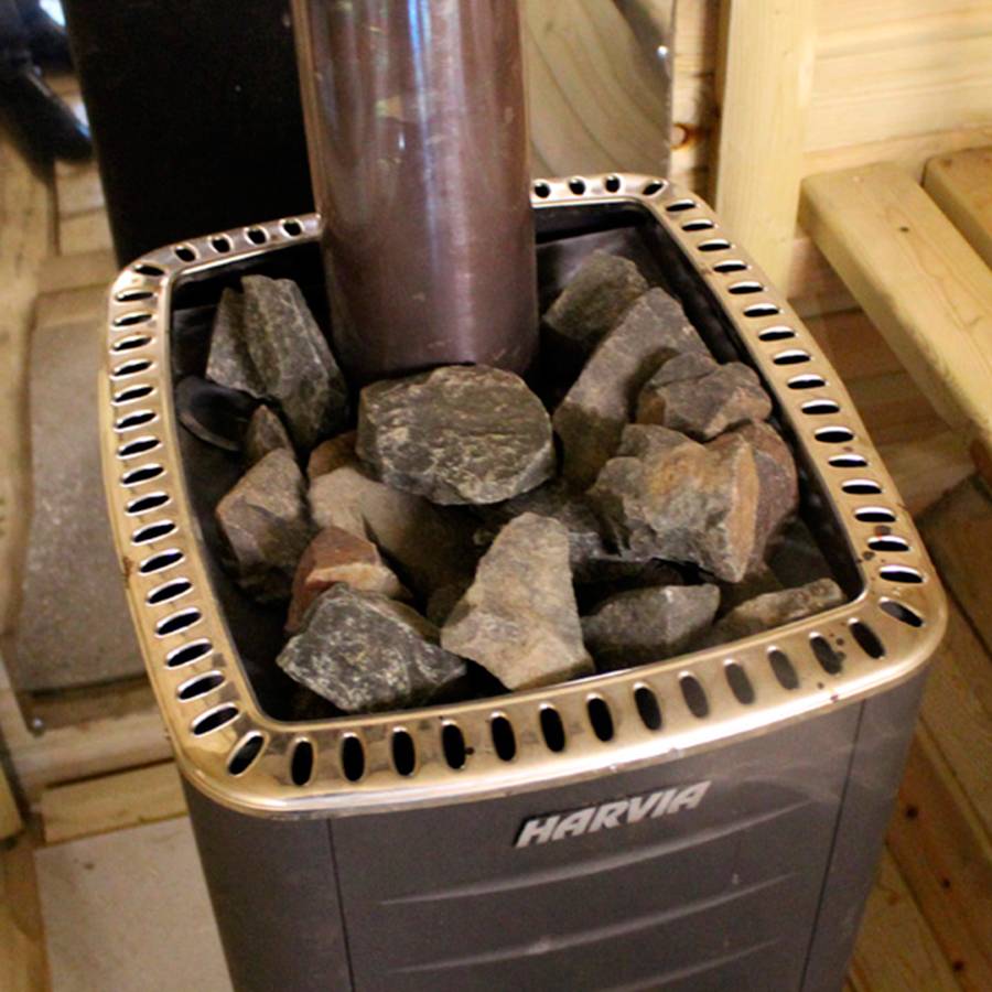 Вмещает до 100 кг камней, в основном имеет открытую конструкцию, что позволяет увеличить количество сухого пара.