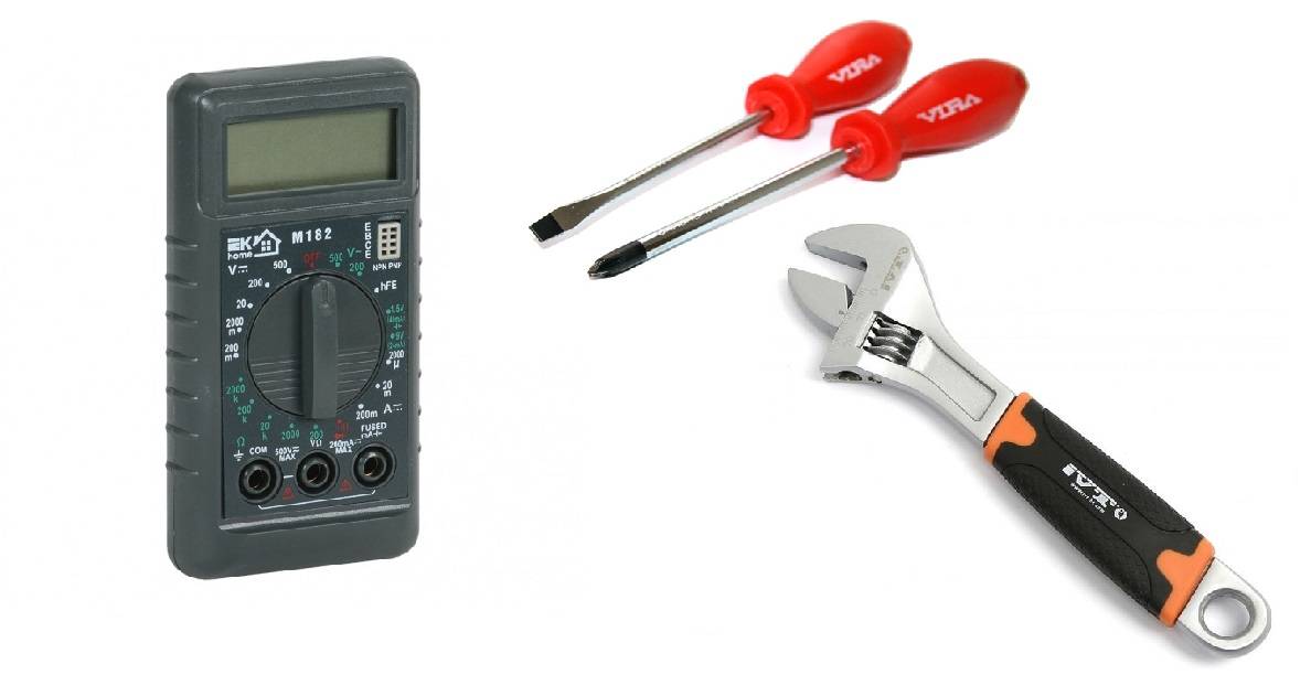 Всё, что понадобится для диагностирования и ремонта электрического полотенцесушителя — это мультиметр, разводной ключ и набор отвёрток