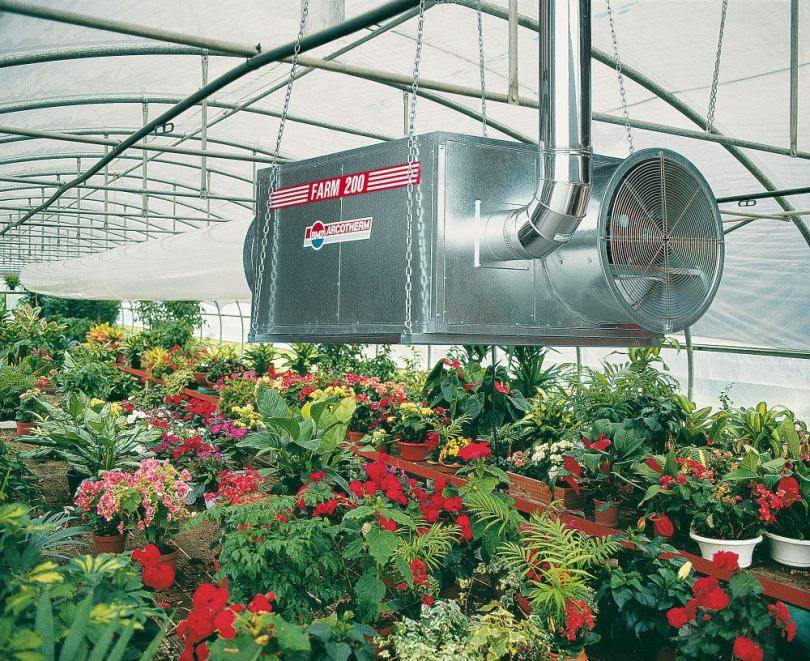 Оборудование создает сильный поток горячего воздуха, поэтому важно устанавливать его в верхней части теплицы чтобы не навредить растениям.