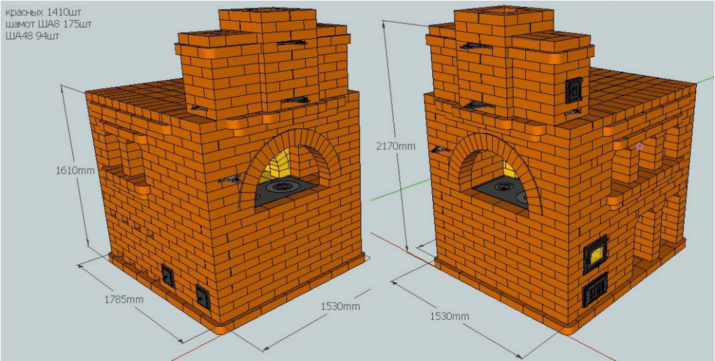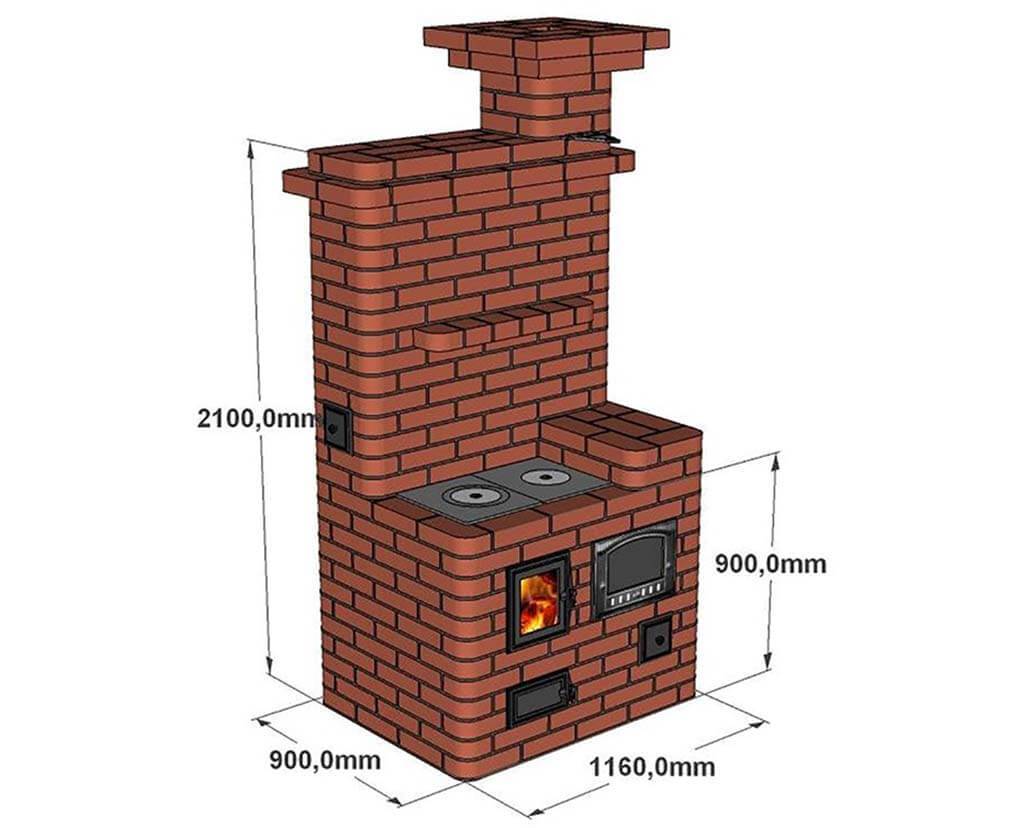 Разные варианты исполнения могут обладать, как варочной поверхностью, так и дымоходными каналами различной сложности, которые обеспечат повышенный тепловой эффект. В описании классической схемы говорится, что она должна быть: