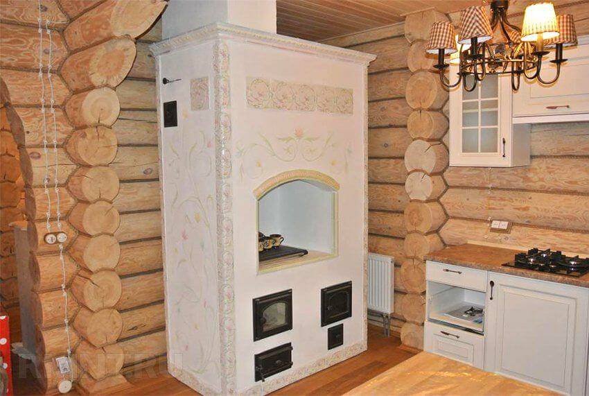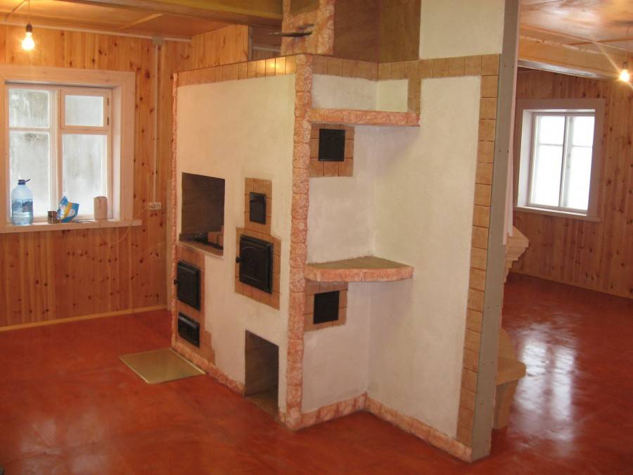 - Выполняют отделку печки – расшивку, штукатурку или облицовку плиткой, изразцами и так далее.