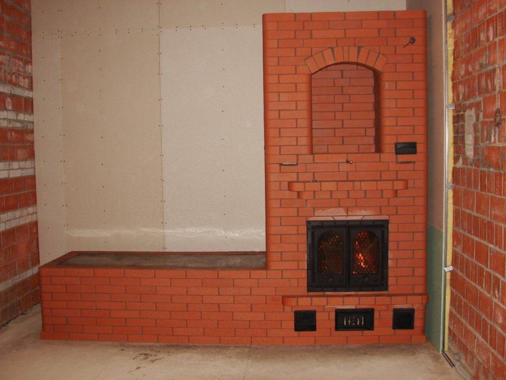 Оптимальной площадью отапливаемого помещения считается 40 кв. м. При кладке печи нужно использовать качественное сырье, а дверь камеры для топки должна быть обязательно литой.