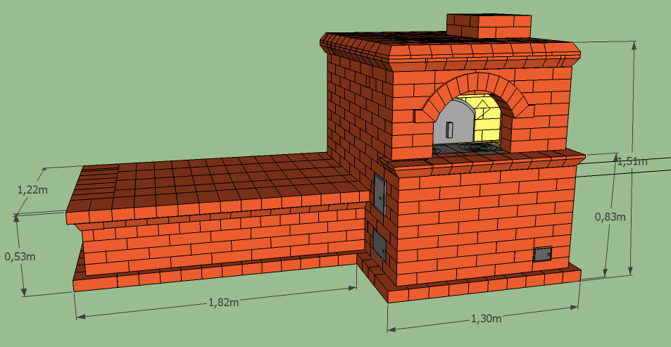 Размер будущего сооружения составит 102х890х217 см + топка камина, которая будет отступать на 13 см.