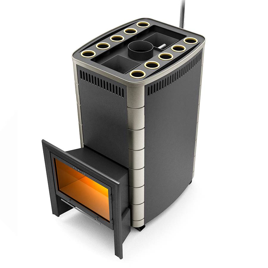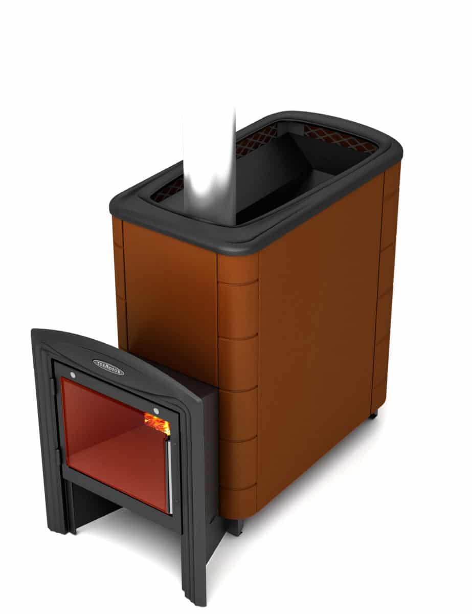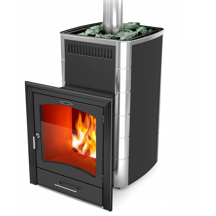 Популярная дровяная печь с системой двойного парообразования, которая дает много легкого пара.