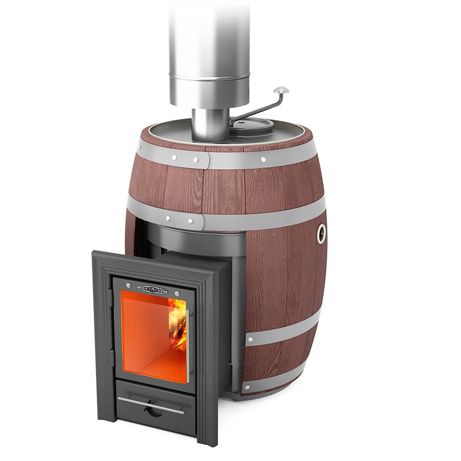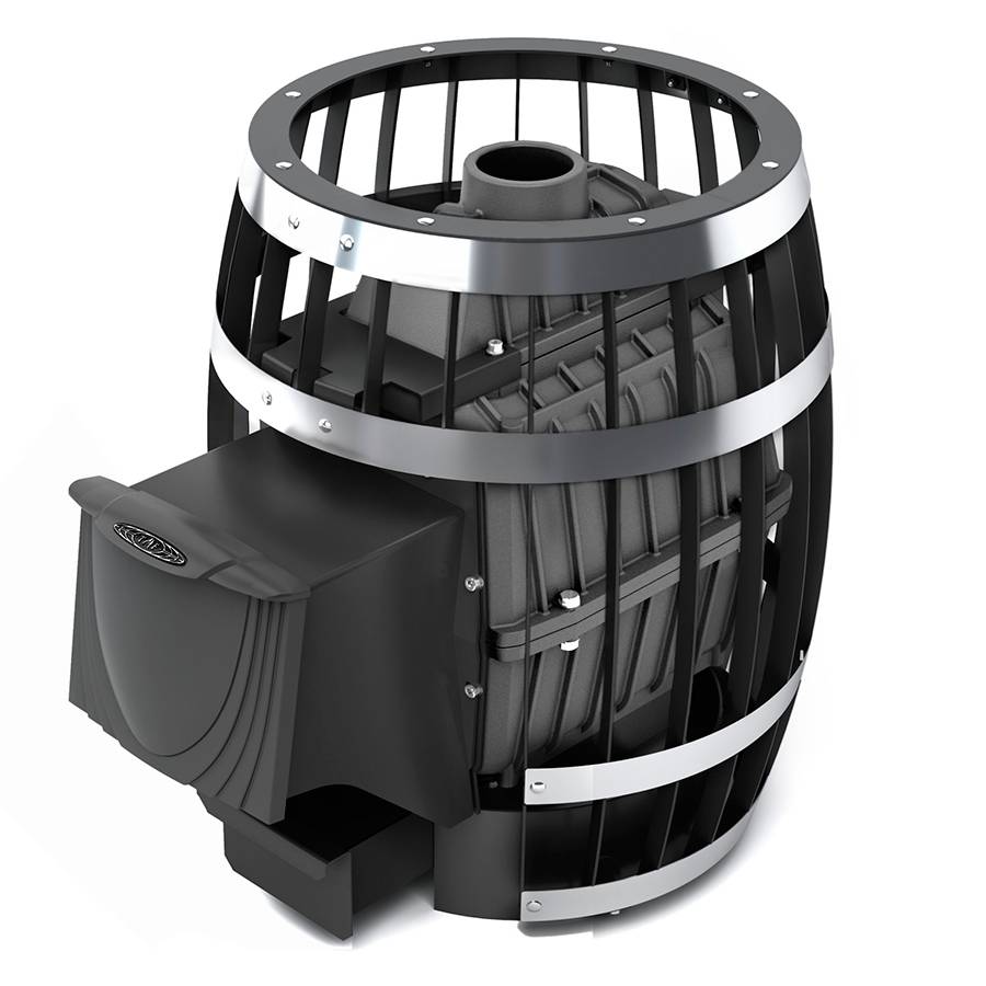 Модель большого размера. Каменка объемом 150 л позволит поддерживать высокую температуру даже в очень большой парилке. Оригинальная форма печи напоминает бочку.