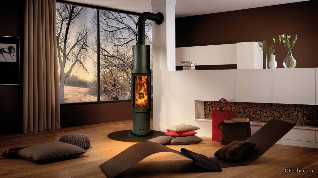 Таким образом, используя для обогрева помещения печь-камин медленного горения с высоким КПД, достаточно загрузить топку единожды, чтобы наслаждаться теплом в помещении не менее шести, а то и до восемнадцати часов. При этом сажи образуется немного, за что хозяйки особенно благодарны производителям. Подобными качествами обычная печь похвастать не может.