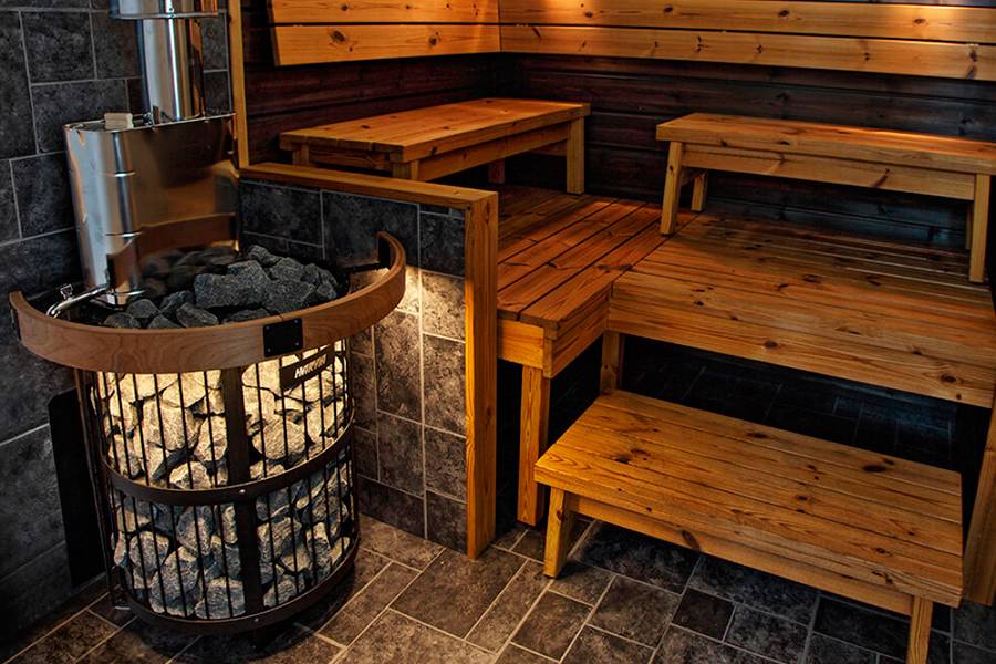 Объемная каменка даже при низкой температуре позволяет получить большое количество влажного пара.
