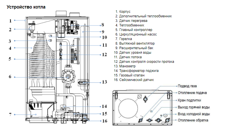 - емкостной теплообменник ГВС из нержавейки, не подверженный коррозии;