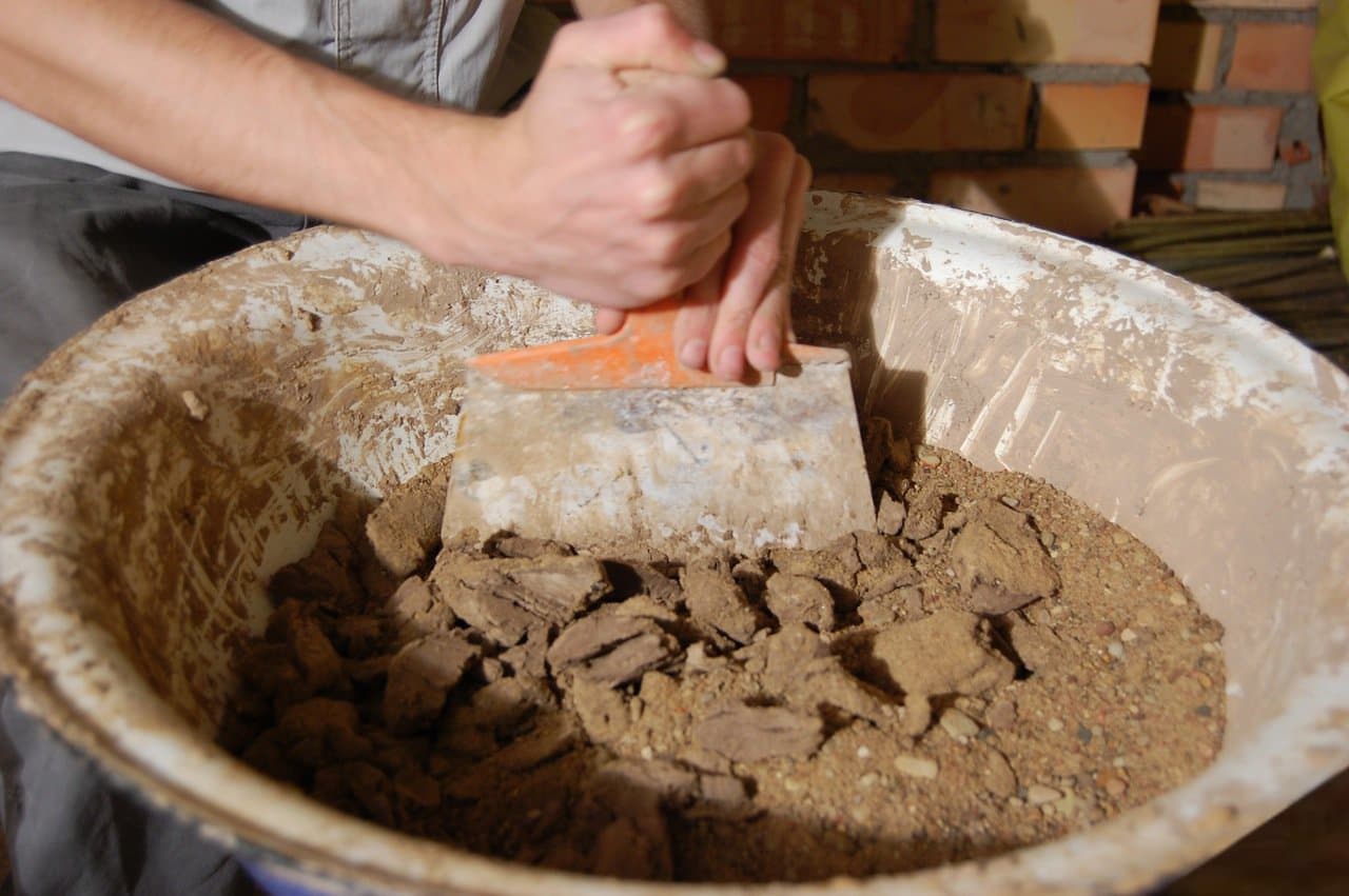 - Сделать раствор из песка и глины в соотношении 1:1. В смесь необходимо добавить несколько чайных ложек воды. Раствор должен получиться густым.