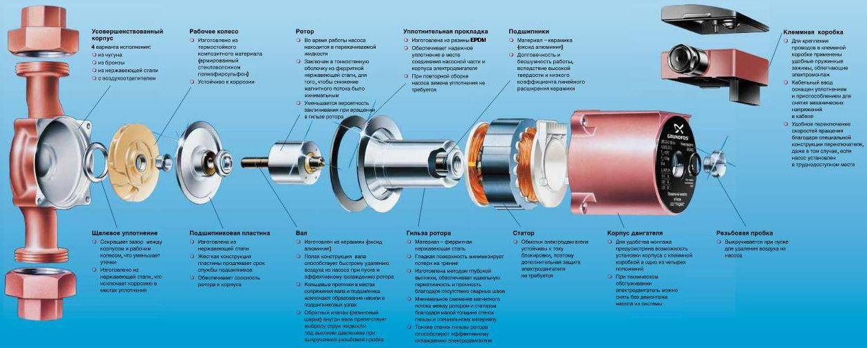 Циркуляционные насосы для отопления частных домов, предназначены для создания принудительного движения теплоносителя в водяном контуре. После установки оборудования, естественная циркуляция жидкости в системе становится невозможной, насосы будут работать в постоянном режиме. По этой причине, к циркуляционному оборудованию предъявляют высокие требования относительно: