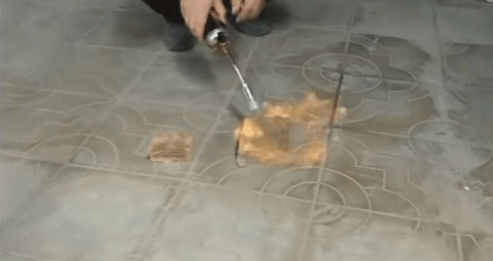 Подвергнем материалы более суровому испытанию. Направим огонь паяльной лампы в одну точку и попробуем прожечь плиту насквозь.