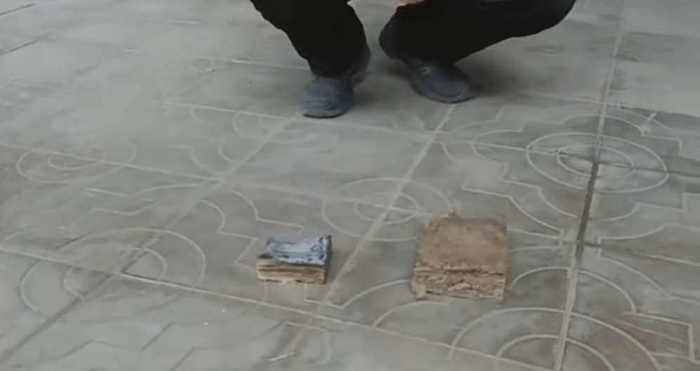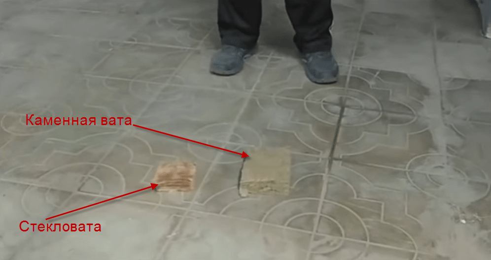 Для полноты картины проверим, горит ли стеклянная вата. В качестве контрольного образца снова выступит кусок каменной ваты, так как этот вид минваты считается лучшим. Итак, кладем два куска утеплителя: