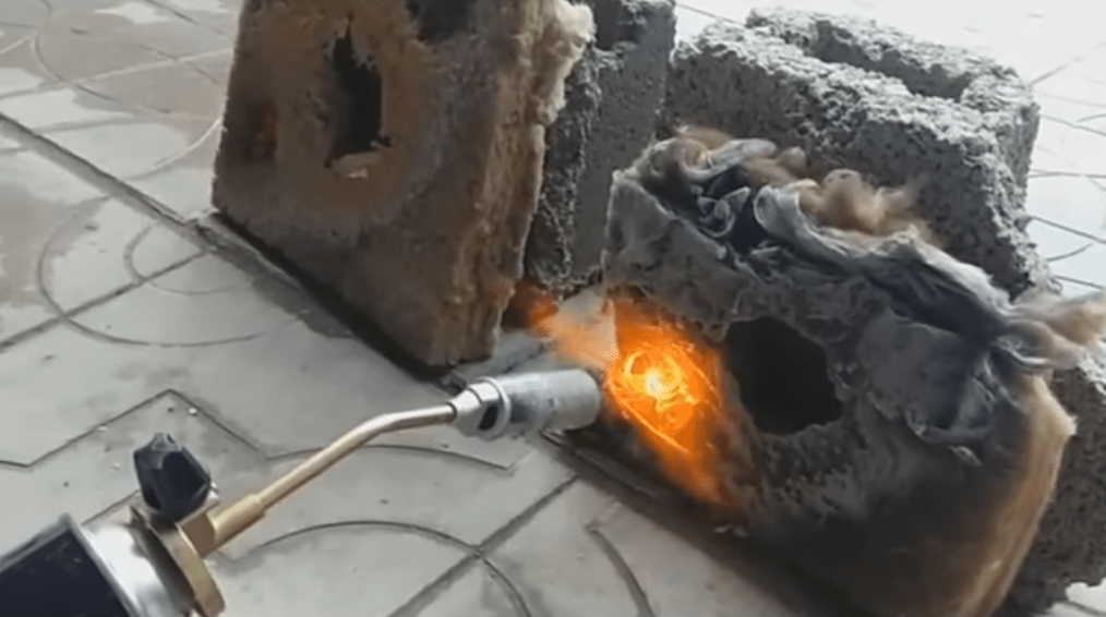 Скажу сразу — оба образца постепенно поддались и в них образовались дырки, что говорит о том, что минералватные утеплители разрушаются при нагреве выше заданного предела.