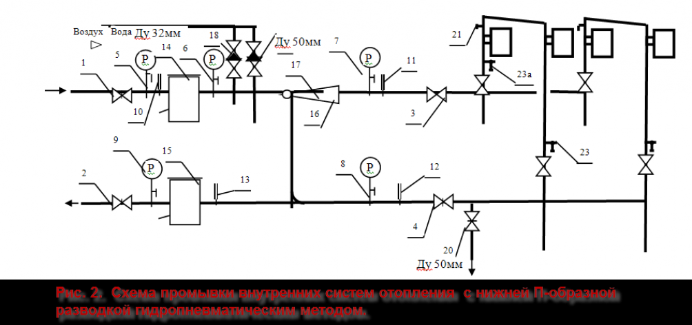 Гидропневматическая промывка систем отопления с нижней разводкой