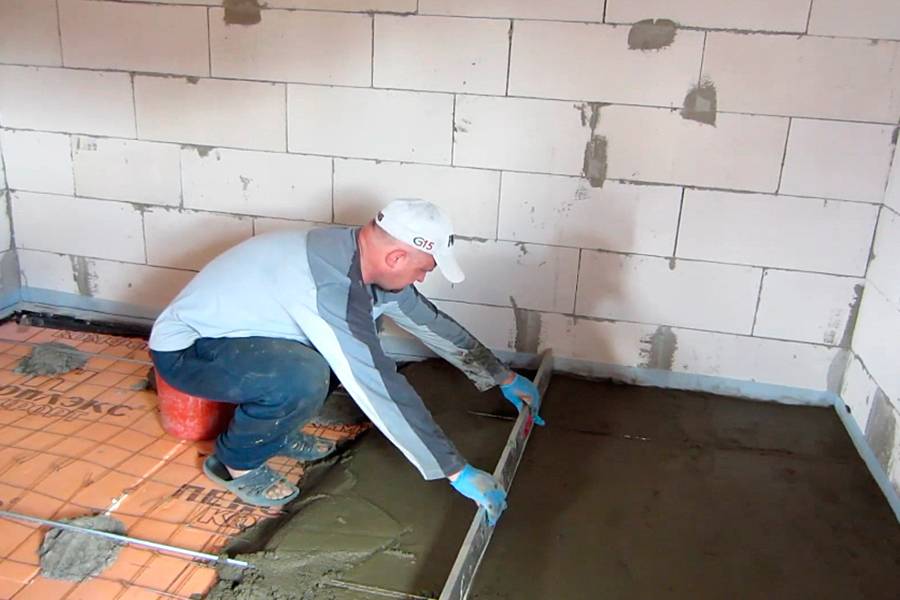 - В завершение – монтаж досок чистового пола. Если укладывается плитка, под нее нужна керамзитобетонная стяжка. Дополнительно владельцы нередко решают установить обогревательную систему.