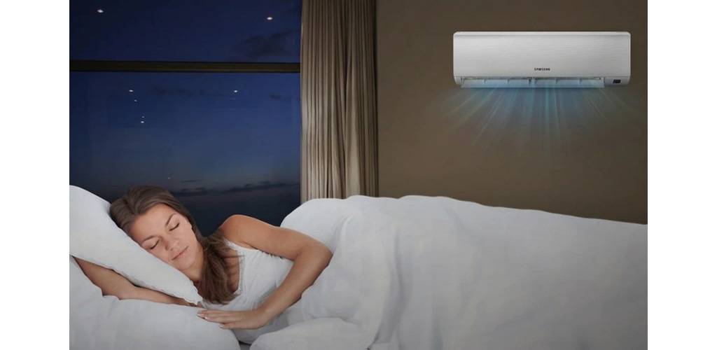 Поставить минимальную скорость обдува, чтобы лишнее гудение не мешало комфортному сну.