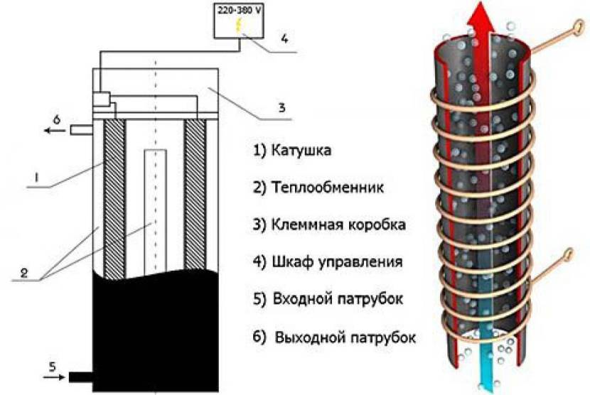 Устройство проточного водонагревателя полностью отличается от схемы принципа действия накопительного оборудования. Этот прибор не имеет емкости для накопления воды, а ее нагрев происходит при постоянном потоке жидкости через нагревательный модуль. В качестве такого модуля используется конструкция из труб с ТЭНами, которые могут располагаться как снаружи, так и внутри конструкции. Лучшим материалом для изготовления нагревательного модуля является медь, но в более дешевых моделях может быть использована нержавеющая сталь или алюминий.