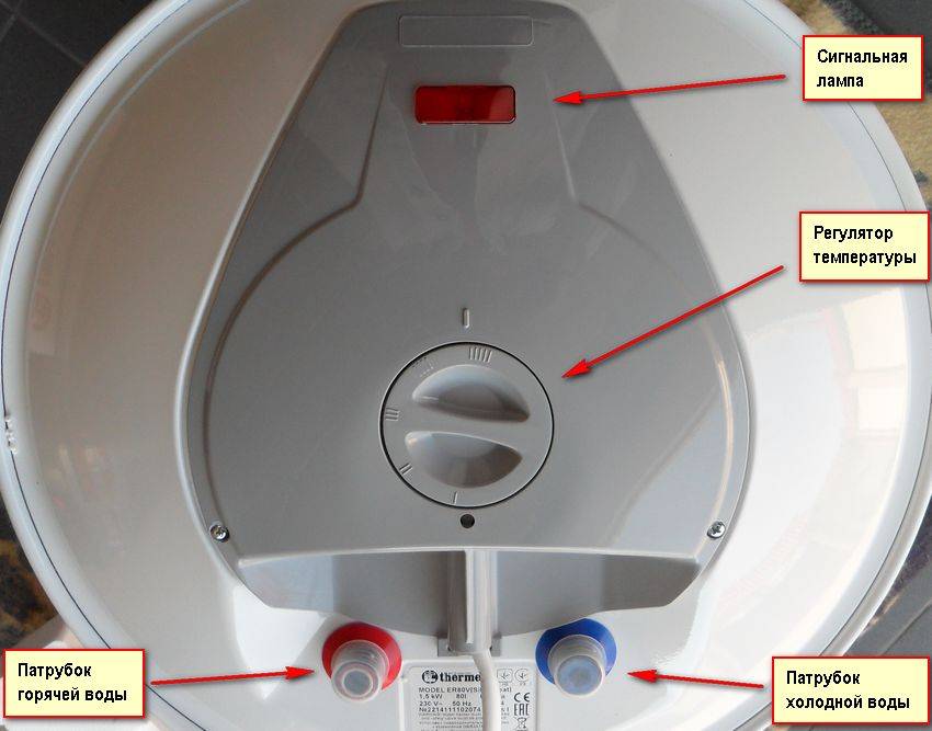 нагревает воду, а термостат контролирует температуру нагрева воды и