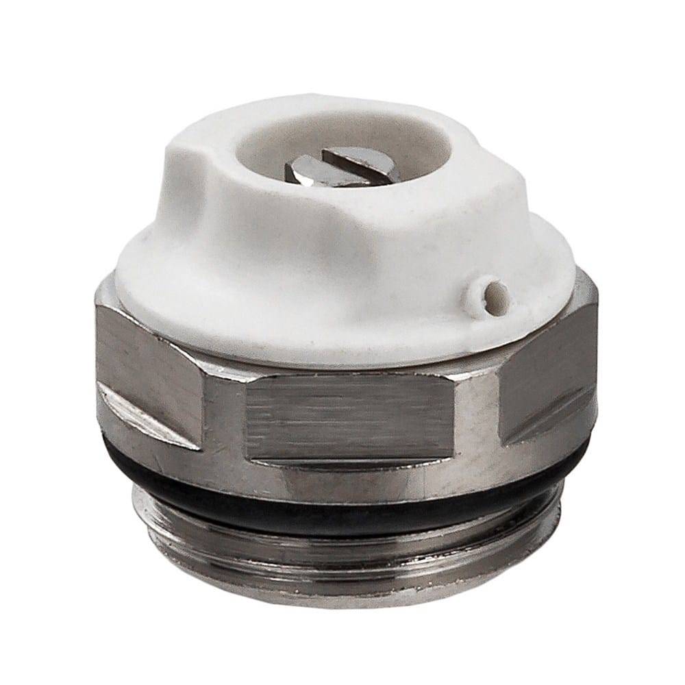 - Автоматический кран. Здесь есть отличия в конструкции и принципе работы от ручного. Автоматический кран Маевского латунный в форме цилиндра, но здесь не предусмотрен игольчатый клапан. Вместо этого используют пластиковый поплавок. Принцип работы здесь заключается в том, что поплавок перемещается при наличии воздуха по системе и открывает или закрывает затворник. Вмешательство людей здесь не требуется.