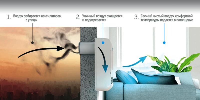 Компактная система для установки в квартире или доме, которая обеспечивает только приток свежего воздуха, обладает маленьким размером, низкой ценовой категорией и легкостью установки.