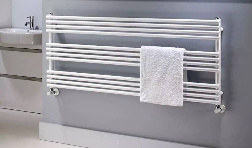 Вертикальные модели на нижнем подсоединении совмещают с полотенцесушителями в банях и саунах