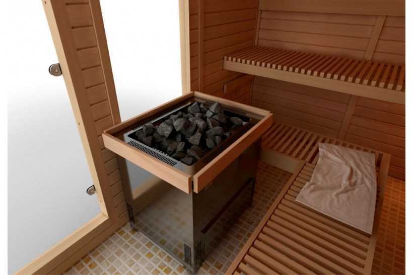 В саунах практически не найти массивных печек с укрытым от взора сердцем – камнями. Сегодня, как правило, в них устанавливаются электрические конструкции с открытым отделением, в котором засыпаны камни.