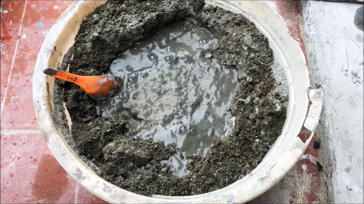 - Снова массу перемешивают, добавляют кварцевый песок, если смесь густая, то наливают воду, хорошо мешают.