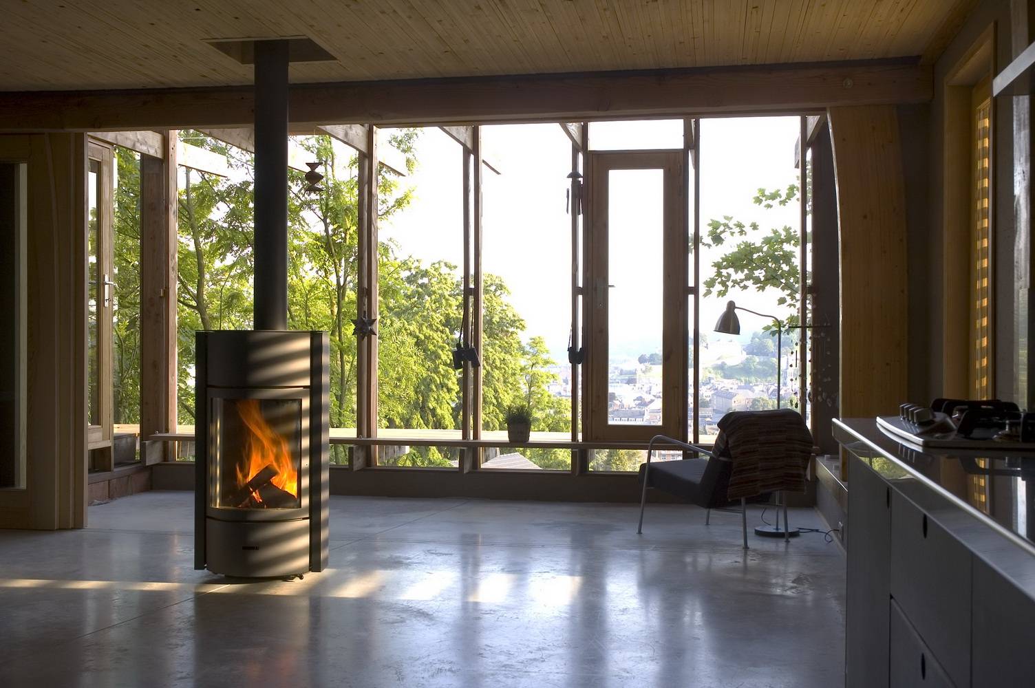 - возможность любоваться открытым пламенем.