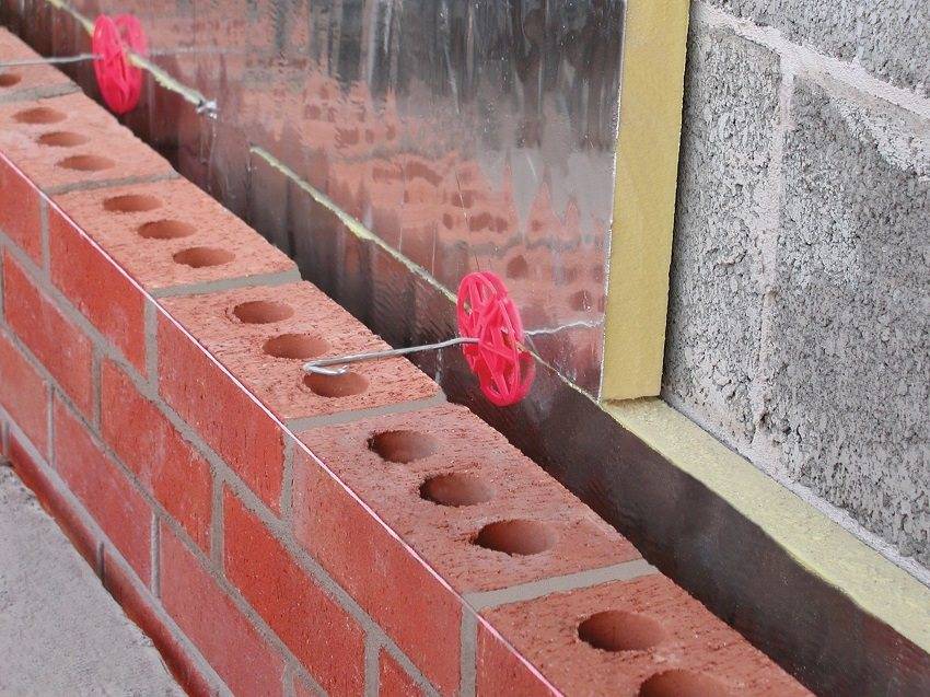 Пример укладки теплоизоляции на кирпичную стену с отделкой в виде облицовочного кирпича