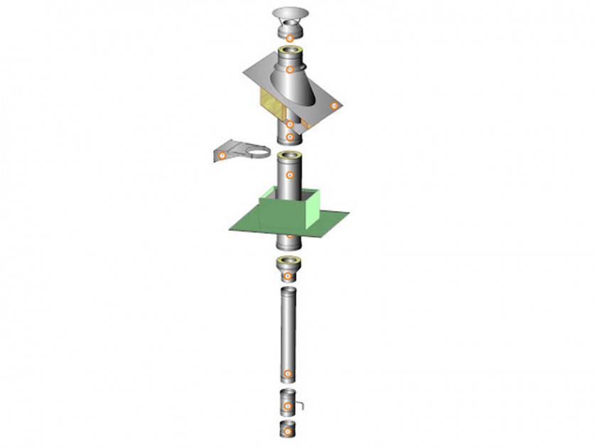 - В ассортименте помимо труб имеются все необходимые элементы, которые только могут потребоваться при сборке дымохода любой конфигурации: отводы и тройники, ревизии и сборники конденсата, вспомогательные элементы для пересечения стен, перекрытий и кровли, а также крепежные кронштейны и многое другое.