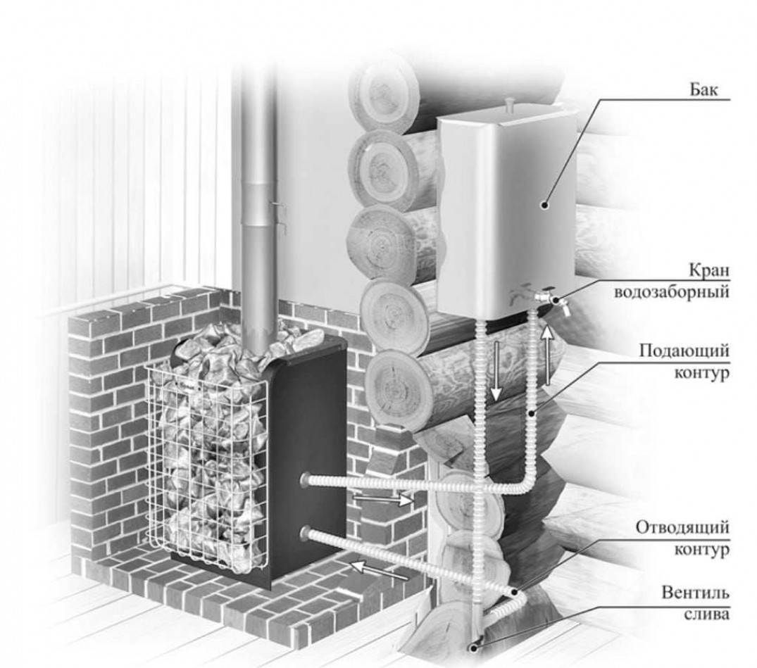 | Печной | За счёт печного отопления осуществляется нагрев воды и выделение пара. В качестве энергоносителя используется уголь либо древесина. |