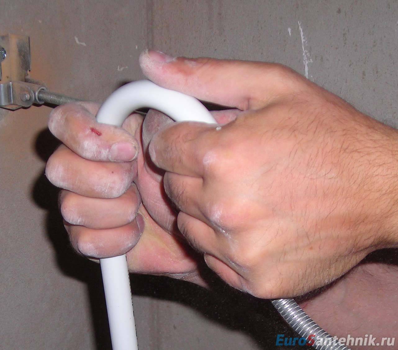 - Можно укладывать трубы с изгибами.