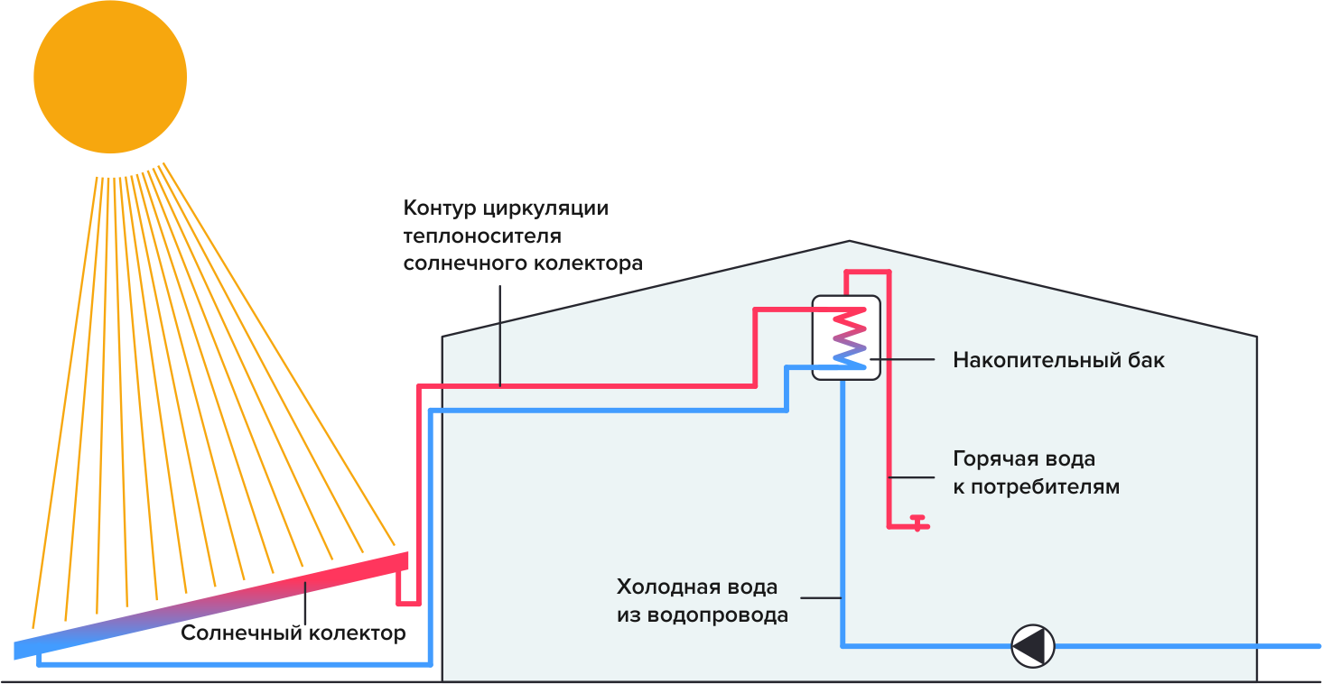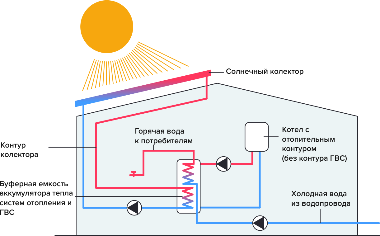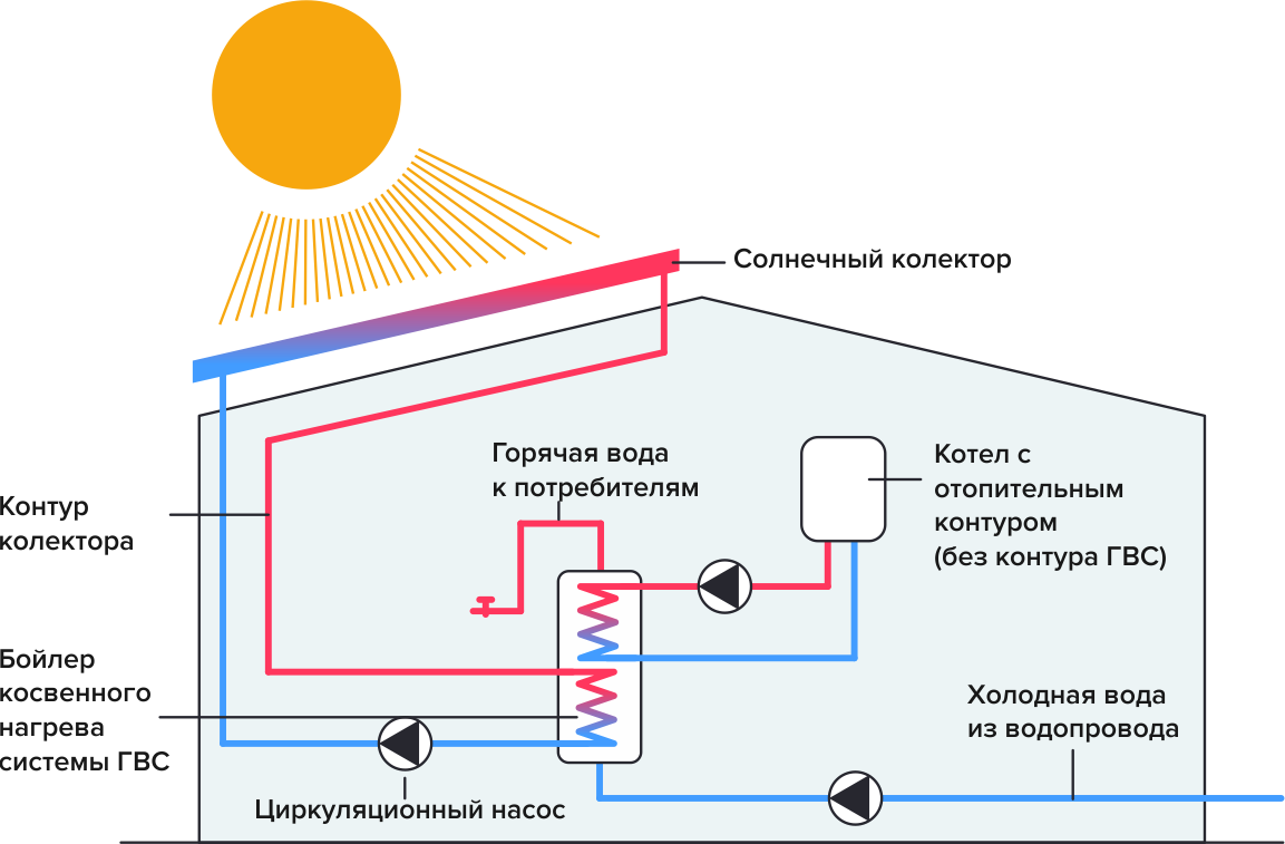 Двухконтурные гелиосистемы (рис. 2) предполагают наличие двух контуров.