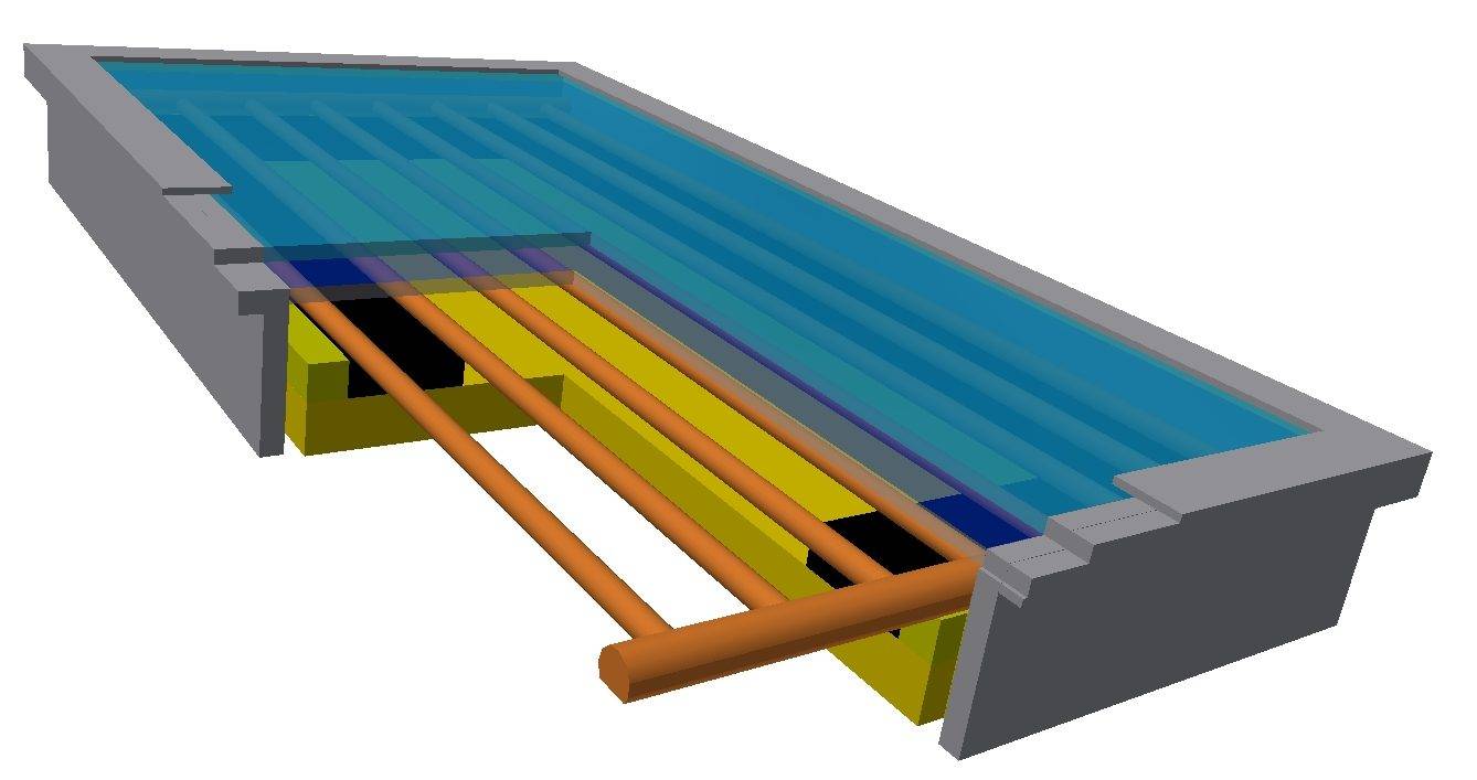 Представляет собой конструкцию трубчатого типа, заключенную в специальную деревянную раму. Как правило, одновременно применяется два коллектора в союзе с накопителем и аванкамерой.