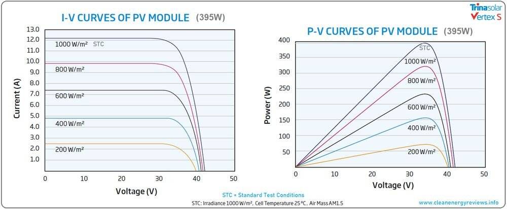 Приведенные выше кривые мощности показывают взаимосвязь между излучением и выходной мощностью панели.