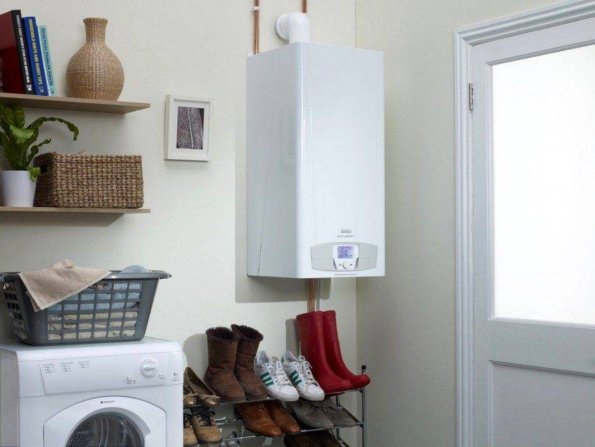 Навесной газовой котел с дымоходом, установленный в частном доме