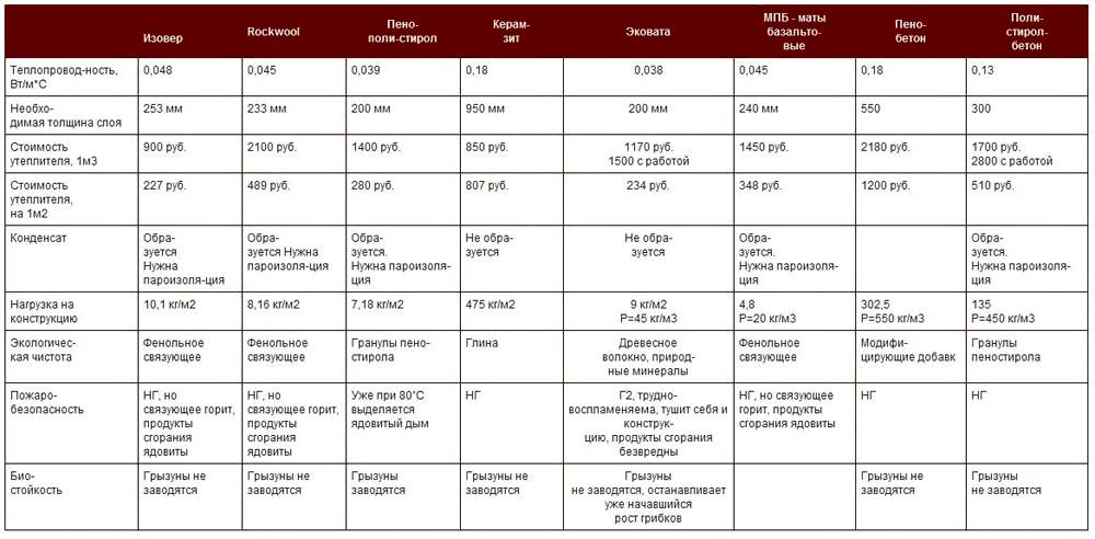 Толщина и вес материала. Чем будет тоньше и легче утеплитель, тем меньше будет утяжеляться конструкция при монтаже теплоизоляции.