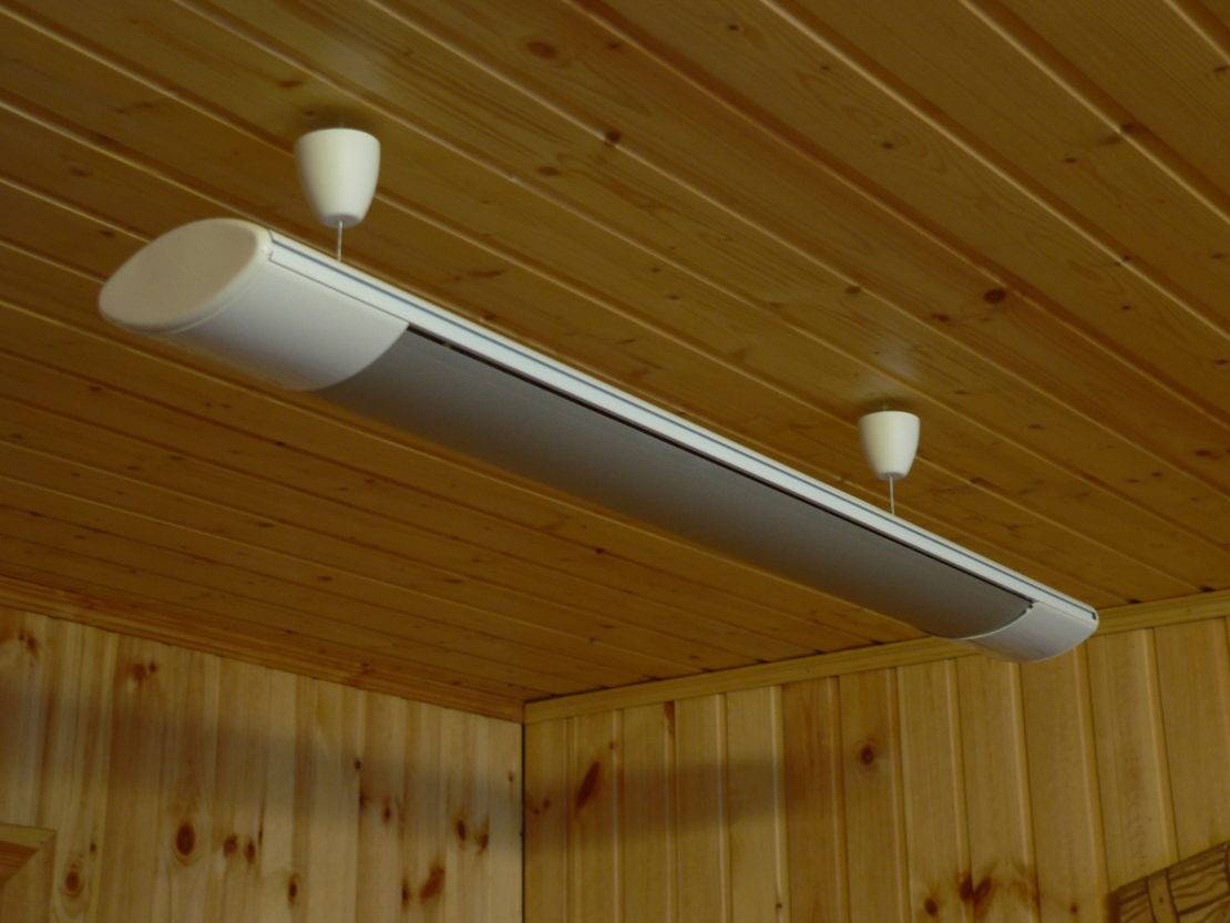 Монтаж инфракрасного отопления производят либо на потолке, либо на полу. Обогреватели могут встраиваться в потолочные панели или крепиться специальными кронштейнами. Необходимо помнить, что натяжные потолки и инфракрасные обогреватели не совместимы.