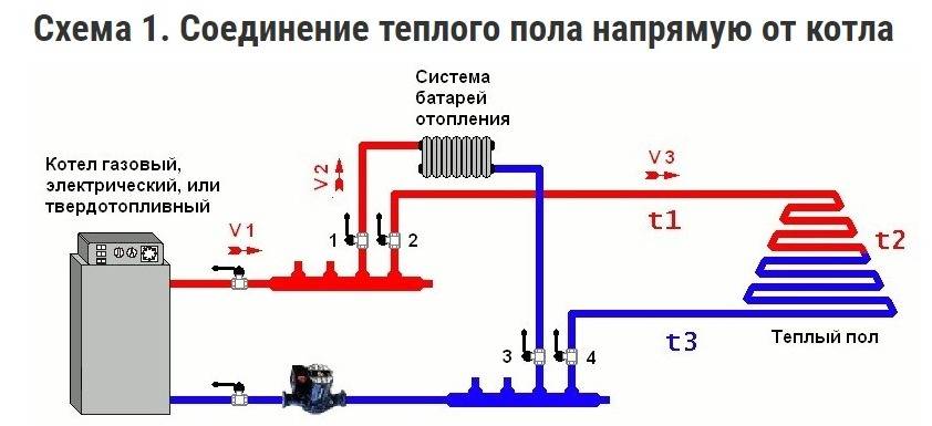 Проток теплоносителя должен соблюдаться с максимальной скоростью до 0,6 м/с. Перед тем как подключить теплый водяной пол, вы должны подобрать соответствующую схему соединения. Если она предусматривает использование котла, то система должна иметь: