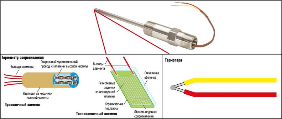 Устройство и принцип действия термопары в термоэлектрическом измерителе и терморезистора в термометре сопротивления:
