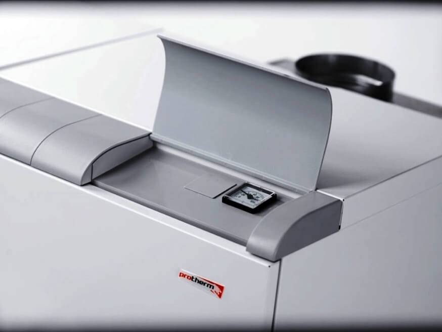 Котлы Протерм 40 PLO и другие модификации линейки являются энергонезависимыми. Для розжига установлен пьезоэлемент. Модели с двухступенчатой регулировкой мощности. Котлы используются в частных домах и небольших производственных цехах. Они оснащены комплектом термостатов для контроля работы циркуляционного насоса. Агрегат можно использовать для нагрева воды, если подключить к нему внешний бойлер объемом 80-200 л. Чугунный теплообменник обеспечивает длительную эксплуатацию оборудования.