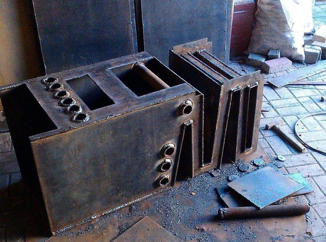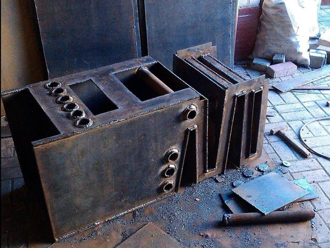 - если вам не удалось отыскать жаропрочную сталь, то можно взять и обычную, но при этом нужно, чтобы она имела двойные стенки, чтобы узел быть достаточно долговечным. Каждая стенка вырезается из стальных листов угловым шлифовальным прибором;